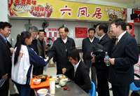 、學生宿舍、學生食堂過程中,周德強主任與同學們親切交談并提出了殷切希望。(校辦)