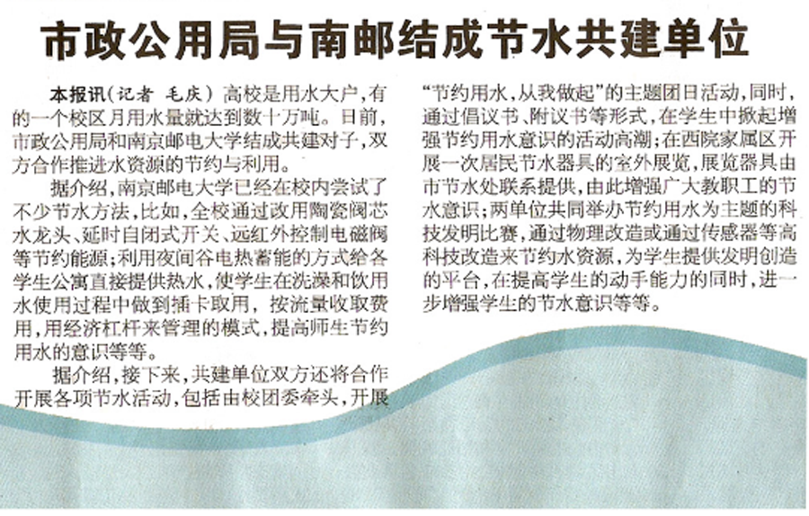 【南京日報】市政公用局與南郵結成“節水共建單位”