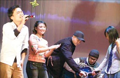 昨天下午,張震岳前往此次南京之行的最后一站——南郵小禮堂,參加由南郵社團(tuán)聯(lián)合會(huì)協(xié)助舉辦的與學(xué)生間的交流活動(dòng)。在主持人的煽動(dòng)下,昨日張震岳在南郵為他的兩位歌迷做了回伴奏,并給大家送上了能引起“共鳴”的一首《我要錢》,引起全場轟動(dòng),唱到高潮處,臺(tái)下都跟著打起了拍子。在交流會(huì)的最后,阿岳還不忘自信地重申,“12月22日的演唱會(huì),你們看了以后一定會(huì)流淚”。