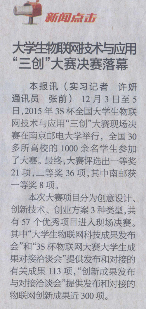 【江蘇教育報】大學生物聯網技術與應用“三創”大賽決賽落幕