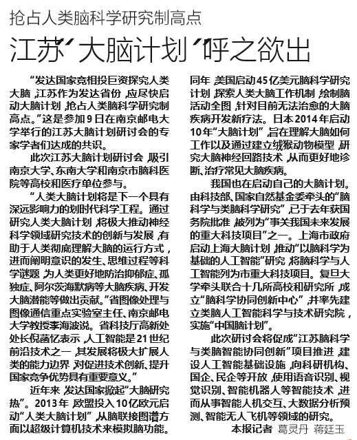 【新華日報】江蘇“大腦計劃”呼之欲出
