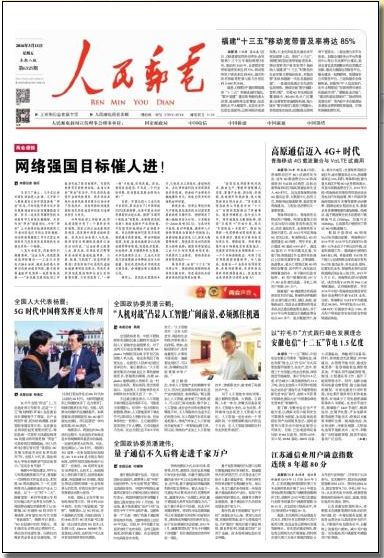 在今年全國“兩會”上,無論是政府工作報告,還是“十三五”規劃綱要(草案),信息通信技術都被寄予了厚望。在產業轉型升級、經濟結構調整、創新型國家建設等方面,信息通信業將承擔起更重要的責任,特別是新一代寬帶無線通信網絡5G的建設和發展更被“兩會”代表委員們頻頻提起。當《人民郵電》報記者問及“我國在5G發展方面能否走在世界的前列”時,全國人大代表、南京郵電大學校長楊震語氣堅定地表示:“這完全有可能!”