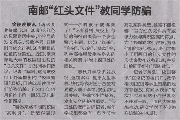 【金陵晚報(bào)】南郵“紅頭文件”教同學(xué)們防騙