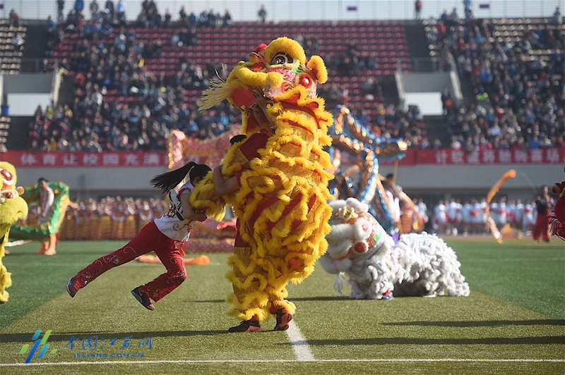 中國江蘇網11月4日訊(新華報業全媒體記者 邵丹 羅鵬)今天上午,南京郵電大學舉辦校園田徑運動會。往日紅色的田徑跑道瞬間變成上萬名師生“紅毯”秀場。大家穿著盛裝,展示各個學院的風采,特別是經濟學院穿著“龍袍”的近200名學生們集體舞龍,氣勢恢宏。其中有七八條大龍,每條龍里有9名學生組成。孔雀開屏、龍出宮、大橫八字……龍獅隊個個精神抖擻,能擺出很多高難度動作,,受到學生熱捧。據悉,南郵龍獅隊創建于2009年,在南京高校中是出了名的。曾多次參加國家級和省內龍獅精英賽,連續多次捧回冠軍。
