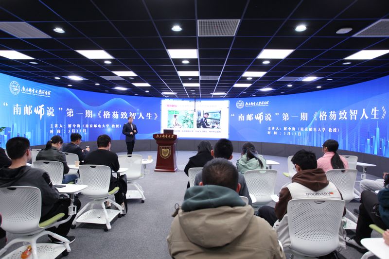 解令海教授潛心研究芴類光電分子十余年,發現了一鍋法合成螺芴氧雜蒽(SFX)技術,確立了從格芴到智能機器人兩點一線的科技探索與哲學人生路。解教授以中國先哲文化之智慧為基礎,疊加西方科學之邏輯,結合自己多年的科學哲學實踐,圍繞“格芴致智人生”主題,從“格‘芴’致知人生”,“‘格芴’致理十年”和“‘格芴致智’未來”三個方面,分享他的成長故事和科研學術經歷,寄語南郵學子扎實學好文化知識,拼搏創新、崇德修身,做博學篤行、知行合一的有為青年。