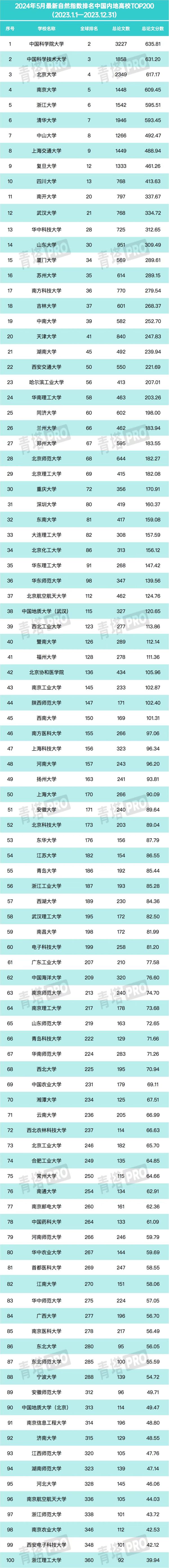 南郵位居2024年最新自然指數中國內地高校第77名