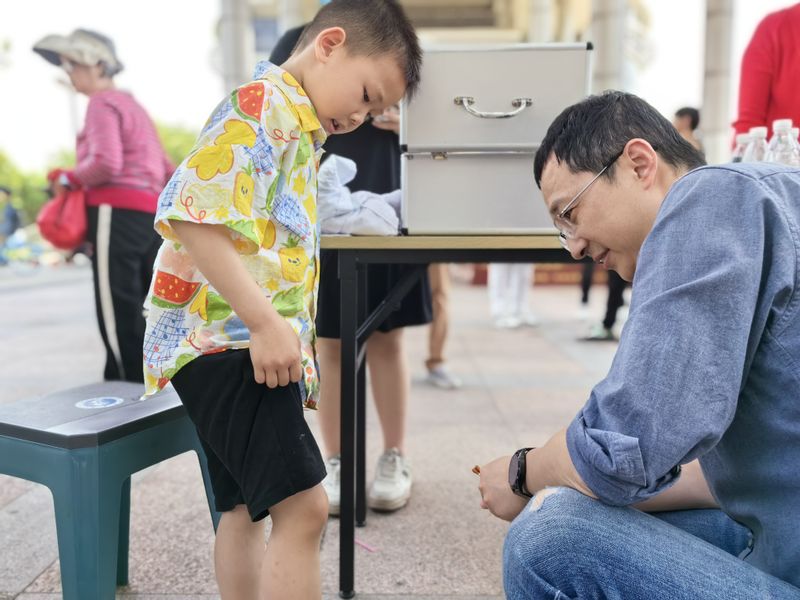 在糖畫制作現場,傳統藝人手把手指導設計和制作糖畫,小朋友們將腦海的構圖,變成現實中的糖畫,又化作舌尖的美味。在面部彩繪現場,小朋友們排成長龍,選擇心儀的圖案,大膽接受彩繪,興奮地與父母合影留念。在留學生展臺,來自摩洛哥、孟加拉等國的留學生穿戴各國服飾,伴隨曼妙音樂翩翩起舞,小朋友們認真地揣摩舞步,感受他國文化。