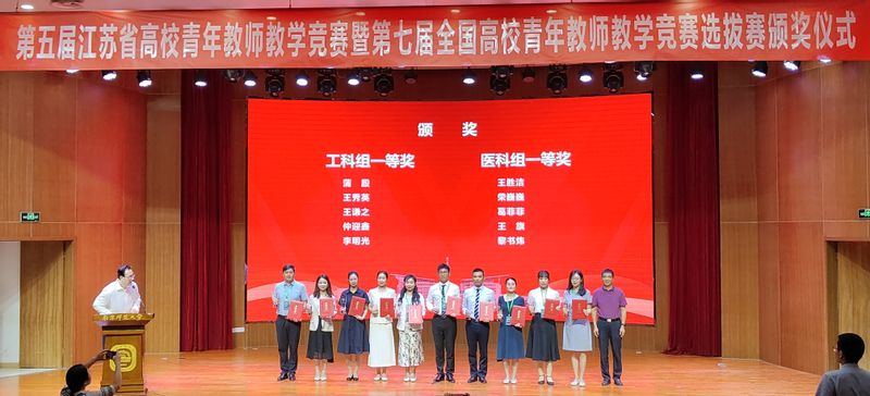 武紅老師(左三)獲第五屆江蘇省高校青年教師教學(xué)競賽理科組一等獎第一名