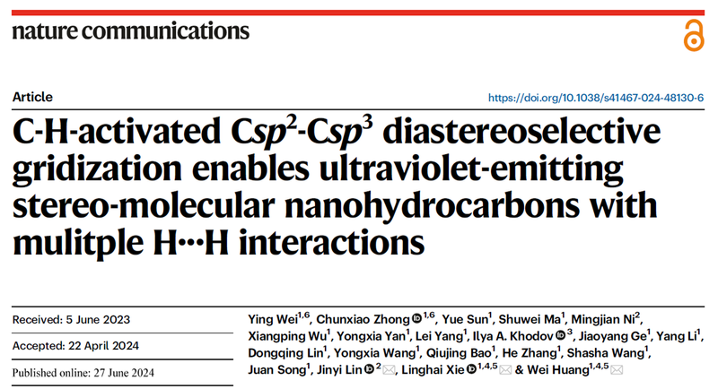 近日,南京郵電大學有機電子與信息顯示國家重點實驗室黃維院士、解令海教授團隊在有機納米烴(Organic NanoHydroCarbon, ONHCs)大環的設計、格子化合成及其寬帶隙紫外發光領域取得關鍵進展。相關成果以“C-H-activated Csp2-Csp3 diastereoselective gridization enables ultraviolet-emitting stereo-molecular nanohydrocarbons with mulitple H···H interactions”為題發表在Nature Communications(《自然?通訊》)上。魏穎副教授和鐘春曉博士為論文共同第一作者,林進義教授、解令海教授和黃維院士為共同通訊作者。