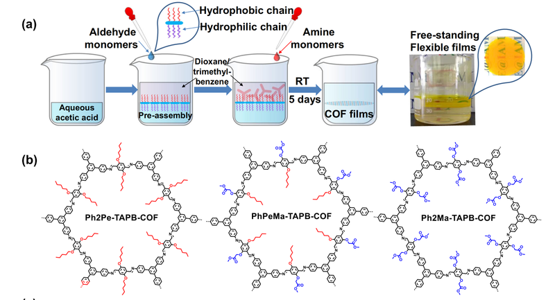 界面預組裝定向生長與COF結構圖