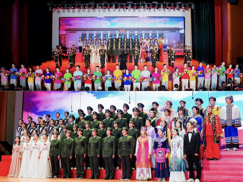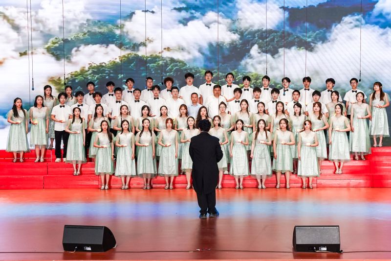 來自20個參賽學院的1200余名師生依次登臺,用激昂的歌聲唱響對黨和祖國的無限熱愛。比賽現場,一首首經典歌曲在舞臺上綻放光彩,《走向復興》《篇章》《飛云之下》《大中國》等歌曲生動體現了“中華民族一家親”的深刻內涵,有助于鑄牢中華民族共同體意識;《我愛你中國》《黨旗飄揚的方向》《愛永在》《我家在中國》等歌曲唱出了中華兒女對祖國的深情告白;《世界贈與我的》《如愿》《我們走在大路上》《我是如此相信》《星辰大海》《我的夢》等歌曲展現出新時代青年對未來的美好憧憬與堅定信念;《有我》《最初的心 最美的夢》等歌曲唱響南郵學子“強國有我”的青春誓言;《就是哪吒》《想把我唱給你聽》《問月》《年輕的朋友來相會》等歌曲歌頌團結、無畏與感恩的美好品質。比賽在“天翼”大學生藝術團合唱團帶來的無伴奏混聲合唱《在森林的那一邊》中落幕。