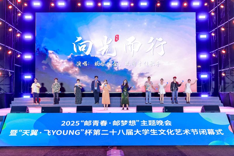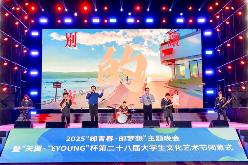 5月19日晚,2025“郵青春·郵夢想”主題晚會暨“天翼·飛YOUNG”杯第二十八屆大學生文化藝術節閉幕式在南京郵電大學仙林校區南操場舉行。校黨委常委、副校長謝平,中國電信南京分公司黨委委員、副總經理、南郵1994級校友楊春澤,相關職能部門、各學院負責人,分團委書記、輔導員和5000余名畢業生共同觀看演出。各類在線直播平臺觀看人數超30萬人次。