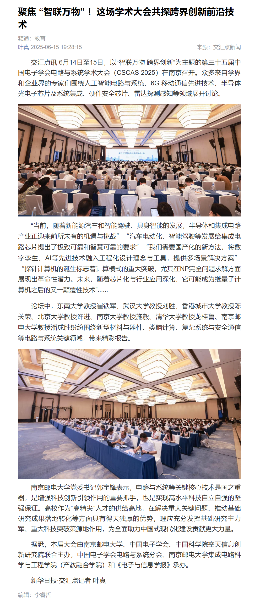 【新華日?qǐng)?bào)客戶端】聚焦 “智聯(lián)萬物” !這場(chǎng)學(xué)術(shù)大會(huì)共探跨界創(chuàng)新前沿技術(shù)