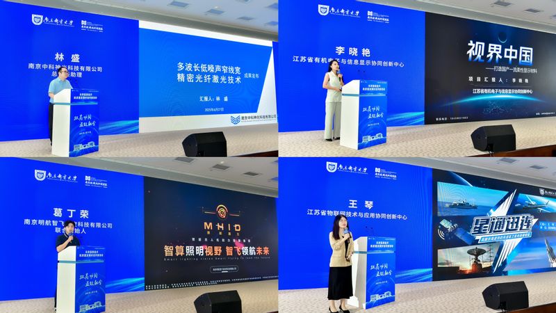 江蘇省工信廳信息基礎設施處主任秦仕昊、南京經濟技術開發區投資促進局局長盧詠歌、南郵一流學科和高水平大學建設辦公室主任劉芫健分別介紹了未來信息技術企業服務政策、區域產業發展情況以及學校相關優勢學科情況。南京中科神光科技有限公司總經理助理林盛、南京明航智飛航空科技有限公司聯合創始人葛丁榮、江蘇省有機電子與信息顯示協同創新中心李曉艷、江蘇省物聯網技術與應用協同創新中心王琴分別作主題分享。