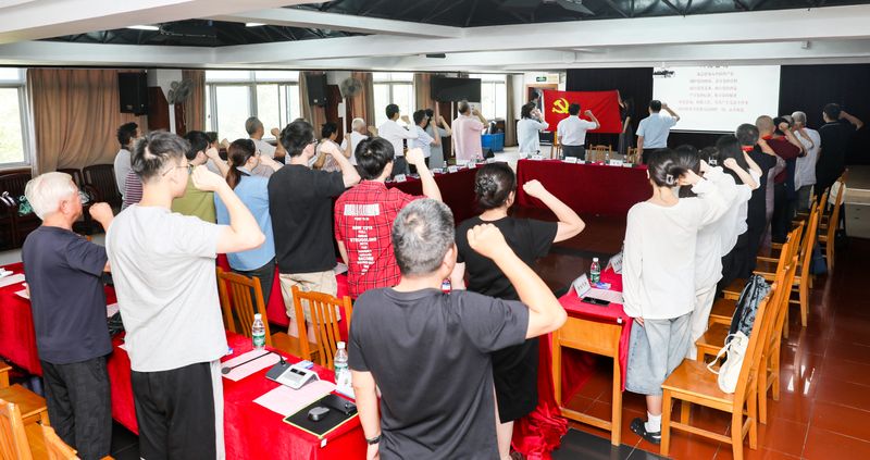 與會黨員熱烈慶祝中國共產(chǎn)黨成立104周年,共度“政治生日”。