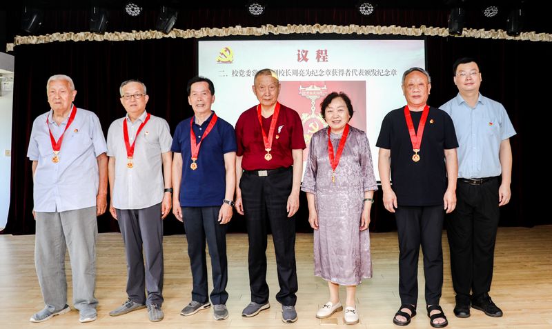 周亮對獲得“光榮在黨50年”紀(jì)念章的老黨員們表示崇高敬意和熱烈祝賀。他表示,作為學(xué)校改革和發(fā)展的開拓者和建設(shè)者,老黨員的奉獻精神和高尚品質(zhì)為學(xué)校發(fā)展注入了強大動力,為青年學(xué)生樹立了良好榜樣。全體黨員要以老黨員們?yōu)榘駱樱瑢W(xué)習(xí)先進事跡和崇高精神,汲取智慧和力量,加強黨性修養(yǎng),提高政治覺悟。