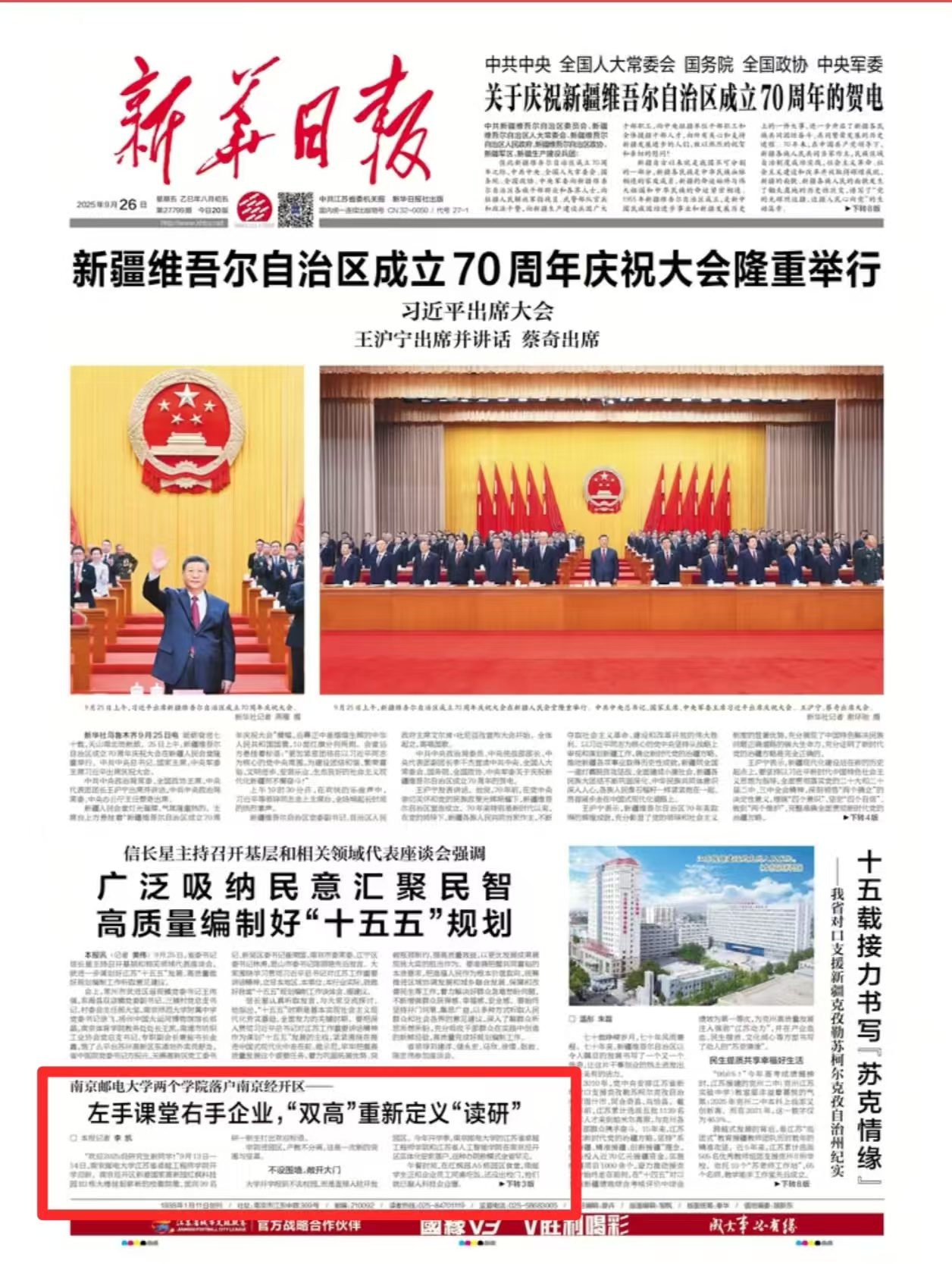 【新華日?qǐng)?bào)頭版】南京郵電大學(xué)兩個(gè)學(xué)院落戶南京經(jīng)開(kāi)區(qū)——左手課堂右手企業(yè),“雙高”重新定義“讀研”