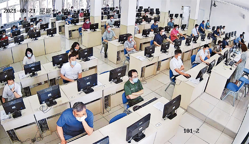 天津市堅持新提任處級黨政領導職務政治理論水平任職資格考試制度,通過“以考促學”、“凡提必考”,引導年輕干部自覺學懂弄通做實習近平新時代中國特色社會主義思想。圖為天津市新提任處級黨政領導職務政治理論水平任職資格考試現場。 天津市委組織部供圖