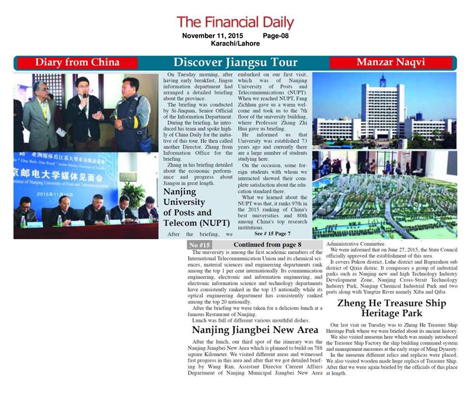 【財經日報(巴基斯坦)】:南京郵電大學
