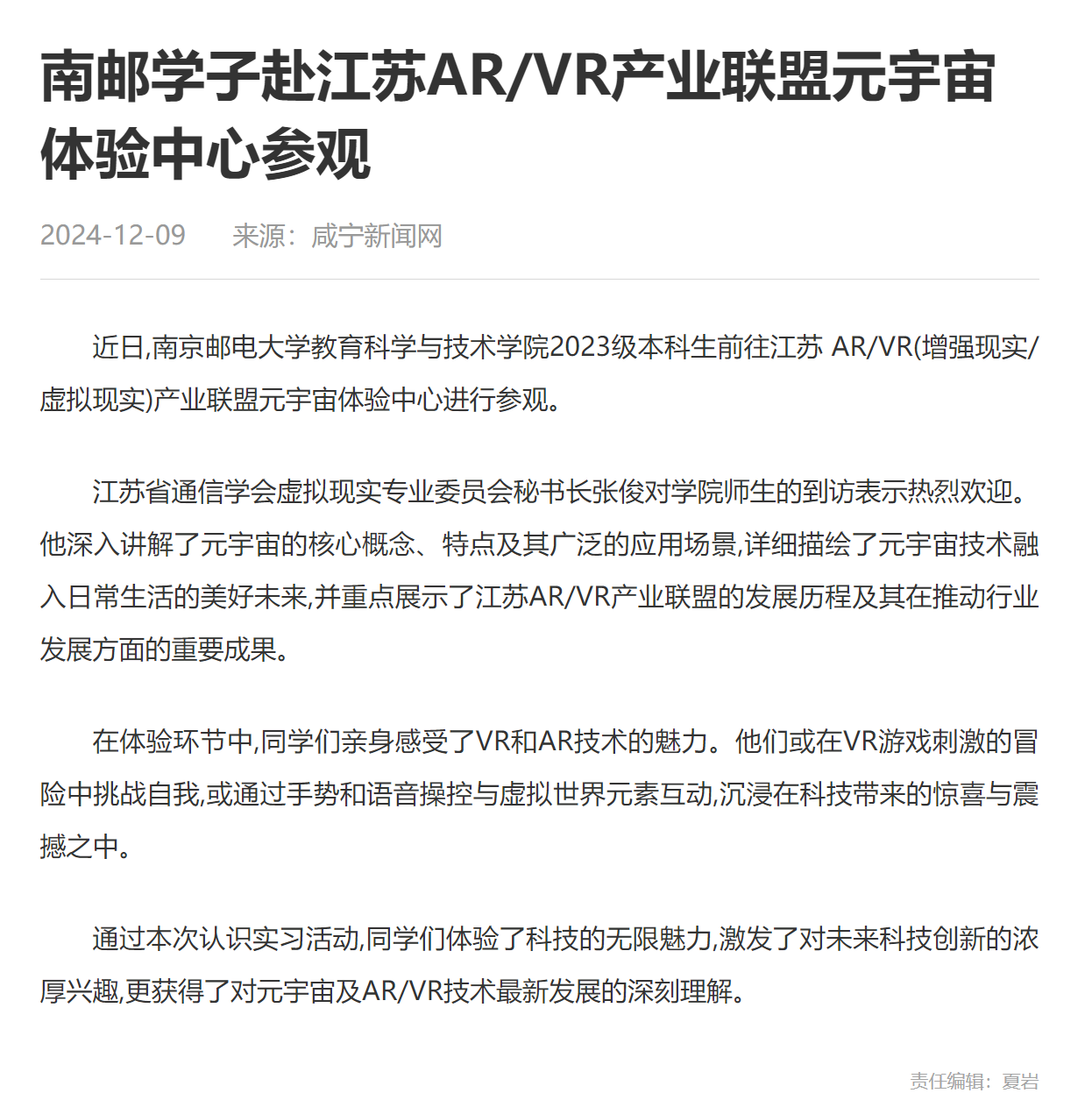 | 【中國網】南郵學子赴江蘇AR/VR產業聯盟元宇宙體驗中心參觀 |