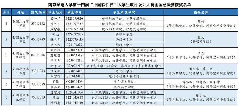 8月28日,第十四屆“中國軟件杯”大學(xué)生軟件設(shè)計(jì)大賽全國總決賽獲獎(jiǎng)名單公布。南京郵電大學(xué)代表隊(duì)獲全國總決賽一等獎(jiǎng)1項(xiàng)、二等獎(jiǎng)1項(xiàng)、三等獎(jiǎng)4項(xiàng)。南郵獲“優(yōu)秀組織院校”稱號(hào)。