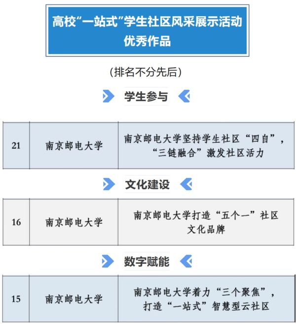 | 南郵3項(xiàng)成果獲評(píng)高校“一站式”學(xué)生社區(qū)風(fēng)采展示活動(dòng)優(yōu)秀作品 |