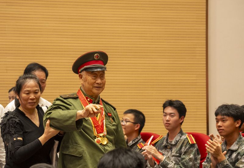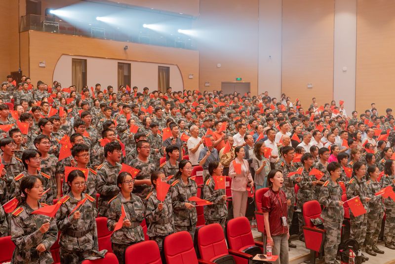 在中華人民共和國成立76周年前夕,為紀念中國人民抗日戰爭暨世界反法西斯戰爭勝利80周年,9月29日下午,南京郵電大學與江蘇省紅色文化研究會共同舉辦的“熱血鑄榮光”——弘揚偉大抗戰精神 賡續傳承紅色基因主題文藝展演在南郵仙林校區舉行。原南京軍區前線文工團的藝術家們與南郵大學生藝術團成員聯袂獻演,為現場師生帶來一場高水準、沉浸式的紅色藝術盛宴。展演由原前線文工團著名主持人俞力揚、徐彤主持。中央軍委獨立功勛榮譽章、國防部解放獎章、華東軍區渡江勝利章獲得者,95歲的抗戰老兵,原中國人民解放軍南京政治學院正軍職教學顧問吳登志親臨現場,當現場師生得知這位從烽火硝煙中走來的英雄就在身邊時,經久不息的掌聲響徹全場。