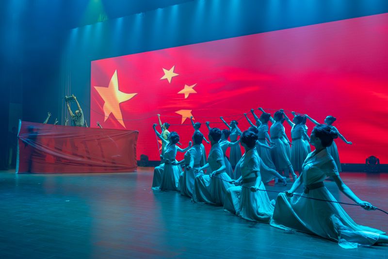 舞蹈《第一課?使命必達》 展演在全場起立高唱的《歌唱祖國》的歌聲中圓滿落下帷幕。