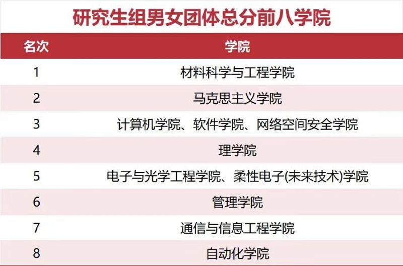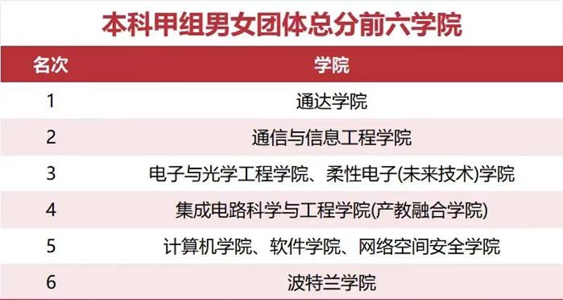 比賽精彩瞬間 10月25日下午,運(yùn)動(dòng)會(huì)落幕。材料科學(xué)與工程學(xué)院榮獲研究生男女團(tuán)體總分第一名,海外教育學(xué)院榮獲本科女子乙組團(tuán)體、本科男子乙組團(tuán)體、本科乙組男女團(tuán)體總分第一名,通達(dá)學(xué)院榮獲本科女子甲組團(tuán)體、本科男子甲組團(tuán)體總分第一名。數(shù)字媒體與設(shè)計(jì)藝術(shù)學(xué)院,電子與光學(xué)工程學(xué)院、柔性電子(未來(lái)技術(shù))學(xué)院,自動(dòng)化學(xué)院,貝爾英才學(xué)院,物聯(lián)網(wǎng)學(xué)院,計(jì)算機(jī)學(xué)院、軟件學(xué)院、網(wǎng)絡(luò)空間安全學(xué)院獲評(píng)“最美方陣”。