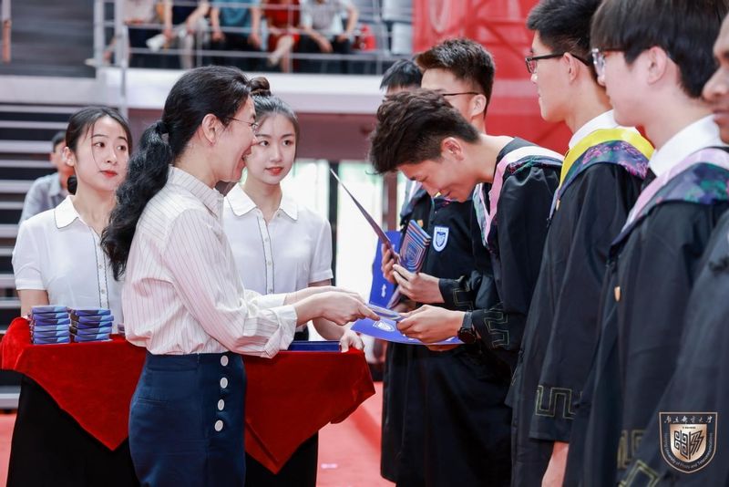 The second phase of the degree awarding ceremony was presided over by Dean of Academic Affairs Shen Jianhua. Liu Qingshan, a member of the university's party committee, vice president, and vice chairman of the university's academic degree evaluation committee, announced the decision to award undergraduate degrees. All university leaders, members of the university's academic degree evaluation committee, heads of various colleges, and teacher representatives awarded degrees and issued degree certificates to the graduates.